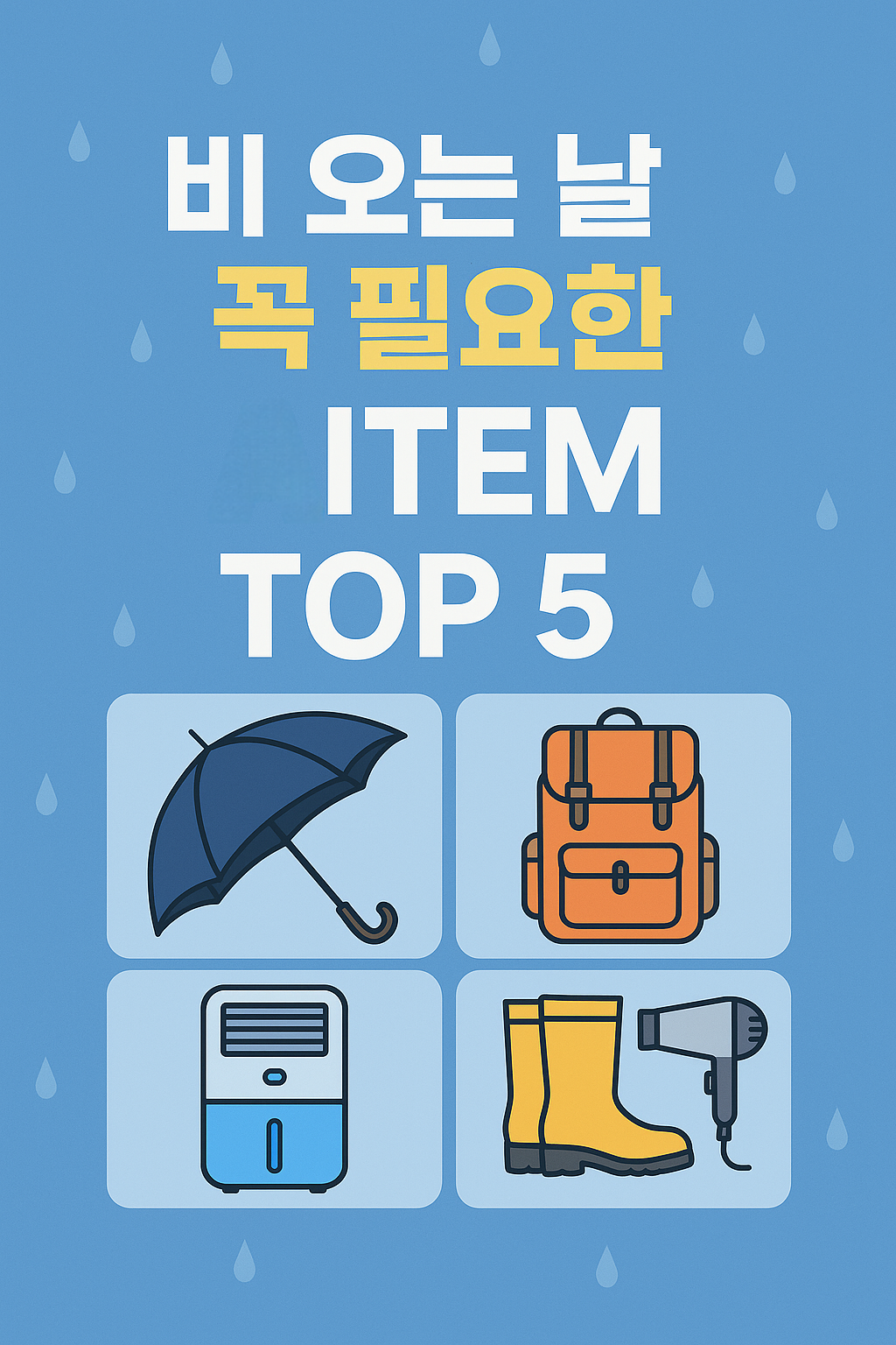오늘은 장마철에 꼭 필요한 실용템 5가지를 소개합니다!